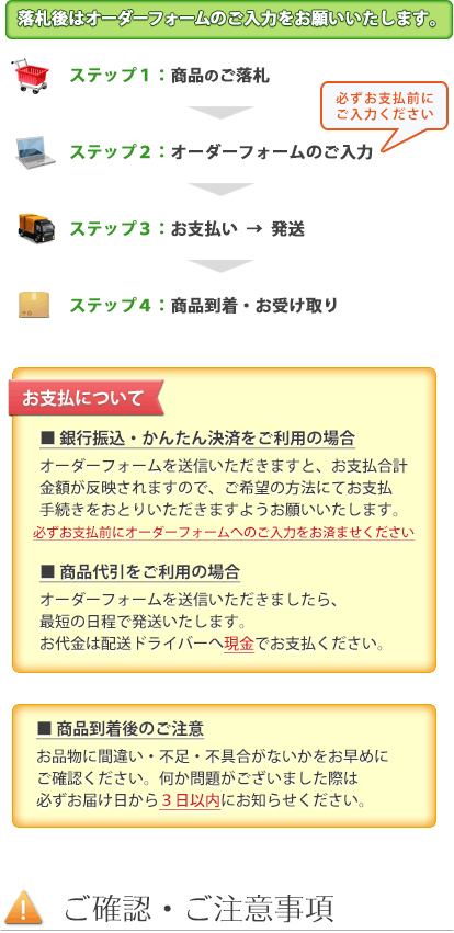 ご落札後はお支払い手続きの前に必ずオーダーフォームへ